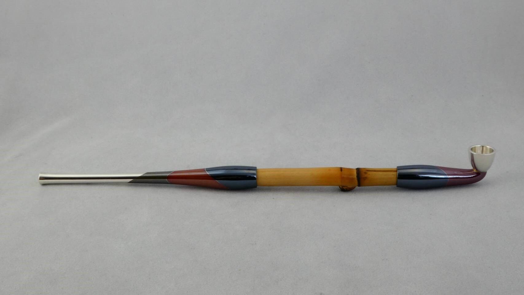 煮込み着色によって、きせるの表面に酸化皮膜をはり彩られた、それぞれの着色した地金の色を、見て楽しめる きせるです。